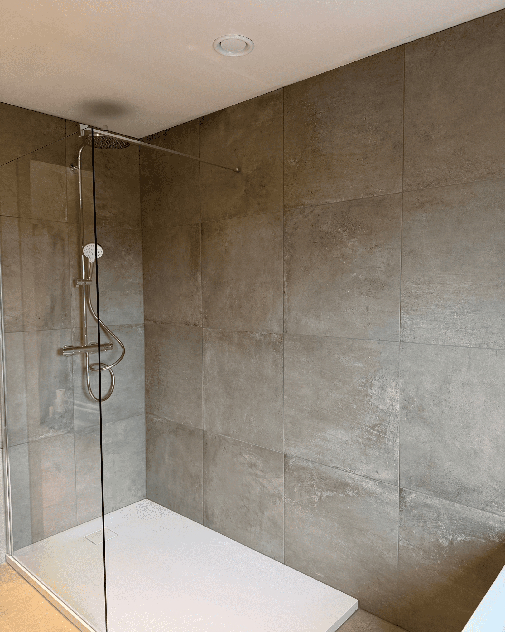 “Oorspronkelijk was dat niet voorzien. We hebben het erna dan aangegeven en dan zijn we tot een goede oplossing gekomen. Tussen de 2 slaapkamers hebben ze een douchecel toegevoegd.” – Anneleen