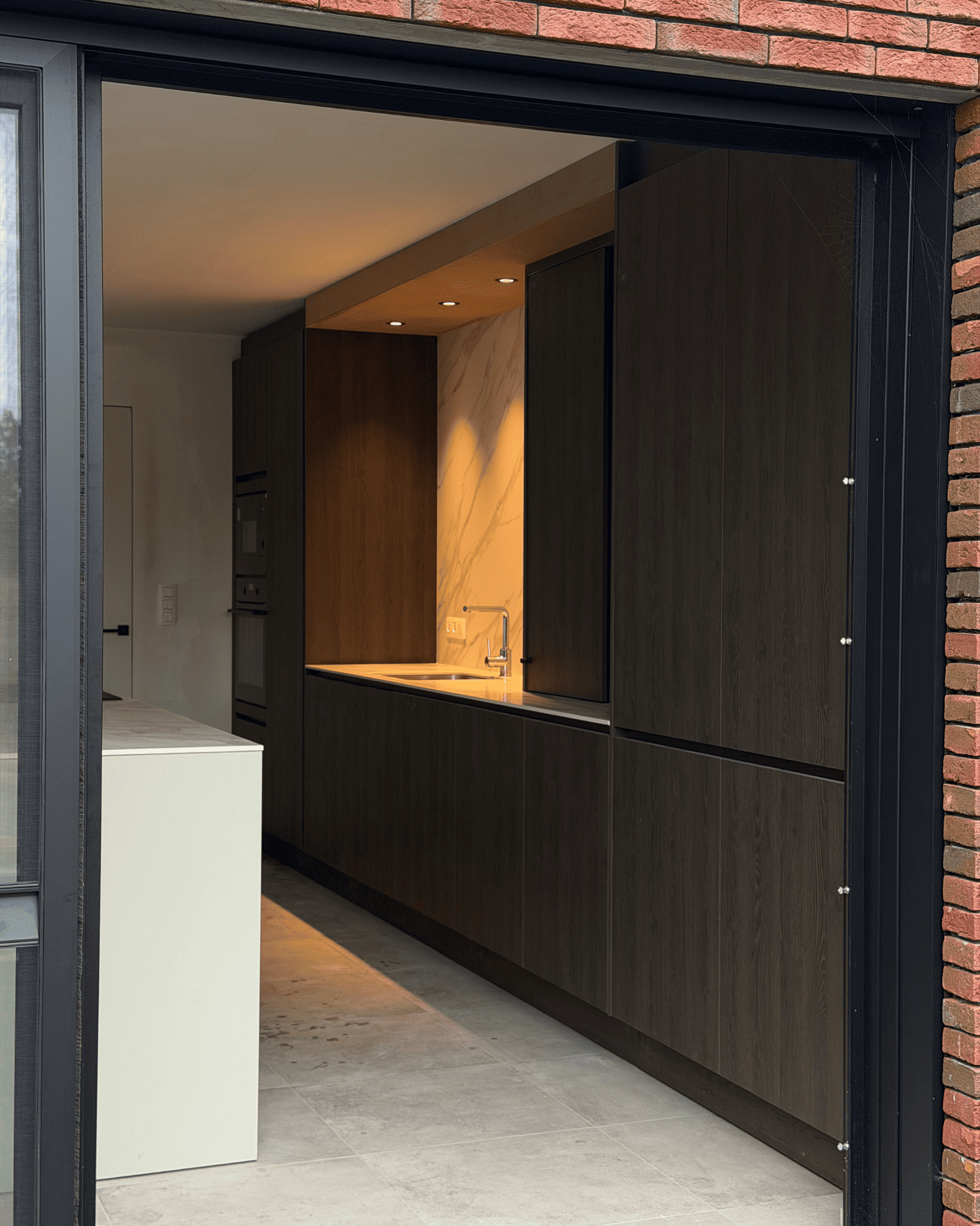 Het bouwen van hun tijdloze woning duurde net geen jaar, precies zoals we hadden gepland. En omdat ze vlakbij de werf woonden, konden ze veel zelf opvolgen. Maar wat hen vooral bijblijft, is onze band.