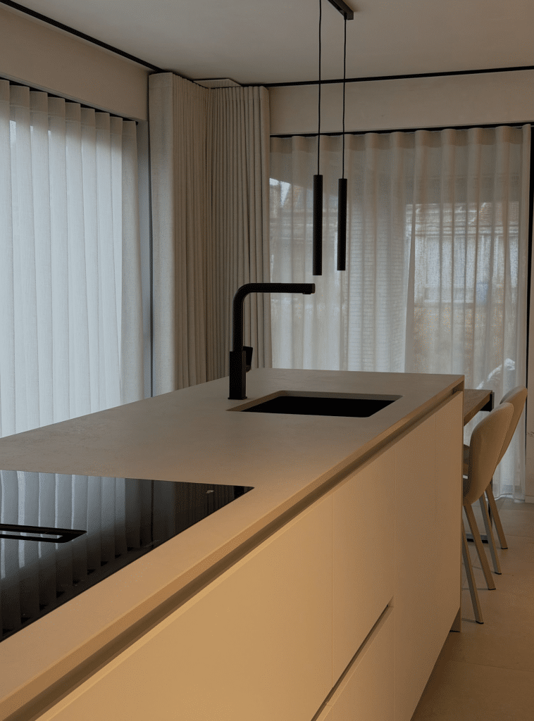 “We zijn echt meer dan tevreden met het eindresultaat. We hebben ook meteen de raambekleding laten plaatsen, want dat maakt direct een groot verschil. Het team van NB-Projects luisterde goed, was steeds bereikbaar en gaf ons het nodige vertrouwen tijdens het hele bouwproces.” vertellen Jens en Evy.